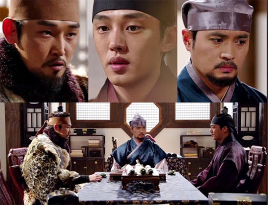 공개된 장면은 이방원의 거처인 경덕전에 모인 이성계 아들 삼형제의 모습을 담고 있다. 둘째 아들 이방과(서동원 분), 넷째 아들 이방간(강신효 분), 다섯째 아들 이방원이 모인 것. 한 곳에 모여 앉은 세 인물의 표정 속에는 분노, 당혹, 진지함 등 그들이 처한 상황만큼이나 복잡한 감정이 담겨 있다.
