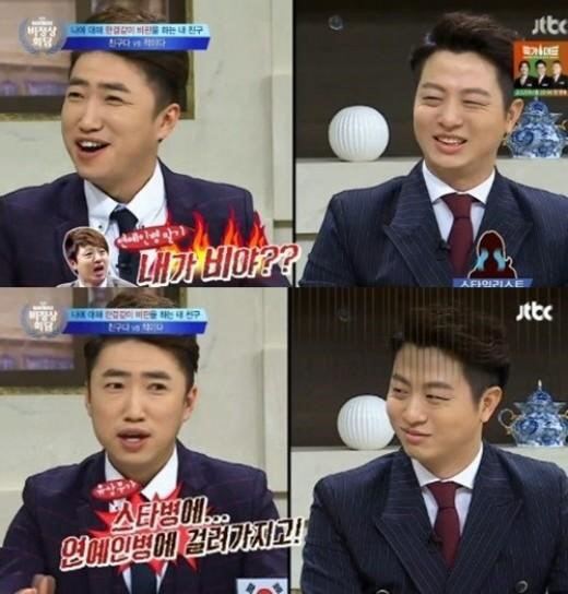 장동민은 "그때 횡포가 너무 심했다. 유상무가 리포터를 하고 있었는데, 의상을 가수처럼 해달라고 그러더라. 그래서 스타일리스트가 결국 비가 입었던 화려한 옷을 구해왔는데, '내가 비야?'라고 했다"고 당시 상황을 설명했다. <스포츠조선닷컴>
