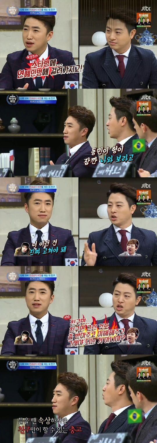 이에 MC 전현무는 "무슨 문제였느냐"고 물었고, 장동민은 "유상무가 스타병, 연예인병에 걸렸다. 횡포가 너무 심해져서 말했다"고 솔직하게 털어놔 웃음을 안겼다.