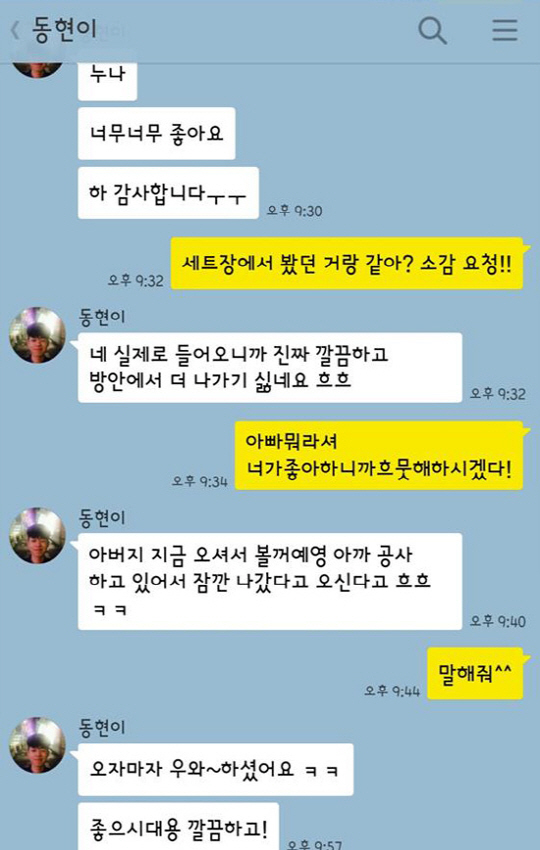 제작진이 공개한 문자에서 김동현은 "바뀐 방이 맘에 들어 나가기 싫을 정도"라며 "아빠도 보자마자 정말 좋아하셨다"라고 기쁜 마음을 드러냈다.