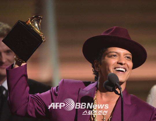 트로피를 거머쥔 마크 론슨과 브루노 마스는 "재능 많은 친구들이 많다. 함께해 주신 많은 분들에게 감사하다. 팬 여러분 없었으면 이 자리도 없었을 것"이라며 소감을 남겼다. <스포츠조선닷컴>
