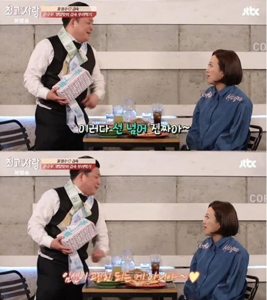콧물까지 흘리며 함박웃음을 보이던 윤정수는 "야...너... 정말.. 이러면 안돼"라며 너스레를 떨었고, 김숙은 "나는 오빠가 내 안에서 휴지 뽑듯이 돈을 썼으면 좋겠다"고 이벤트의 뜻을 전했다.