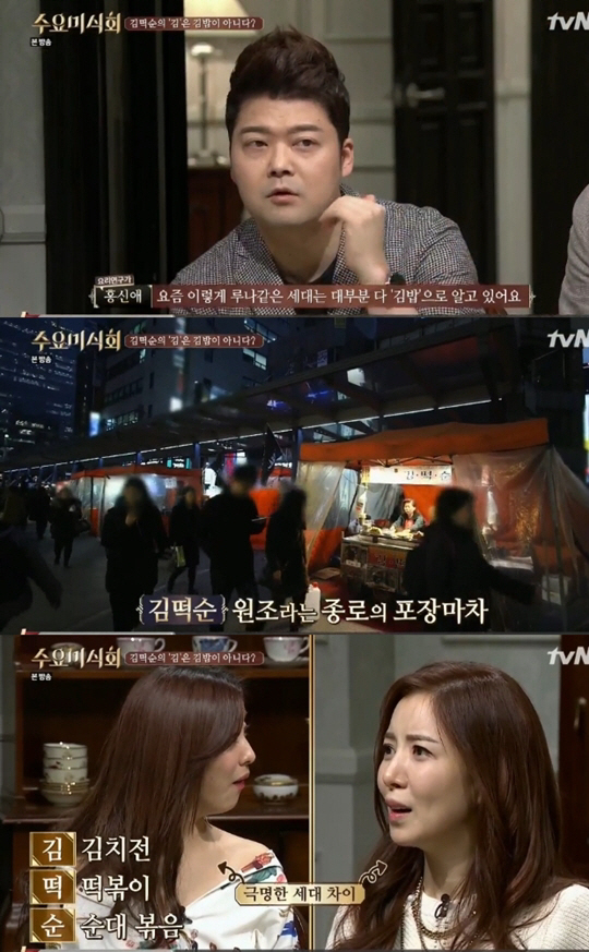 이에 홍신애는 "'김떡순'의 '김'은 김치전이다"라며 "'김떡순'은 종로에서 김치전, 떡볶이, 순대를 세트로 팔았던 것에서 유래했다"고 밝혀 모두를 놀라게 했다. <스포츠조선닷컴>