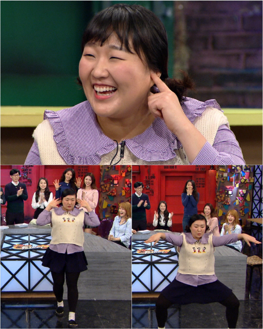 최근 진행된 KBS2 '해피투게더3' 녹화에서 이수지는 화제의 드라마 tvN '치즈 인 더 트랩'에서 홍설 역을 맡고 있는 김고은을 지목, "김고은은 홍설이고 나는 폭설"이라고 주장해 주변을 폭소케 했다. 또 이수지는 가수 싸이, '응답하라 1988'의 택이 아빠 최무성, 배우 김해숙과도 닮았다며 천의 얼굴을 자랑했다. 이어 닮은 꼴 싸이의 '대디' 댄스를 선보였는데 얼굴부터 춤사위까지 충격적인 싱크로율을 뽐내는 그의 커버 댄스에 전 출연진은 기립 박수를 보냈다고.