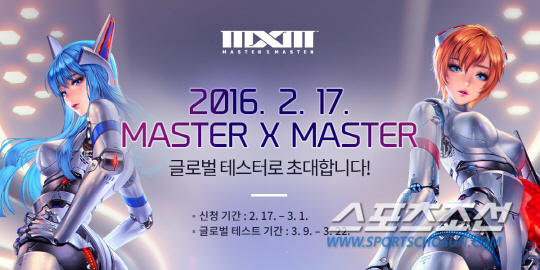 엔씨소프트는 신작 온라인게임 'MXM'(Master X Master:마스터엑스마스터, 엠엑스엠)의 글로벌 테스트를 3월 9일에 시작한다. 한국, 일본, 대만 3개국의 이용자가 3월 22일까지 2주간 글로벌 테스트에 참여해 함께 게임을 즐길 수 있다.