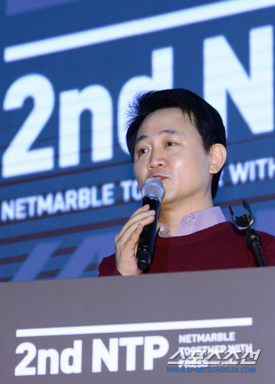 넷마블은 18일 서울 여의도 글래드호텔에서 제2회 NTP(Netmarble Together with Press·넷마블 기자간담회)를 가졌다. 지난해 7월 제1회 행사에 이은 두번째 행보로, 1회 때보다 더 많은 200여명의 취재진이 몰려들어 넷마블에 쏠리는 관심을 증명했다. 올해 출시할 26개의 새로운 게임들을 소개한 이후 방 의장은 넷마블이 앞으로 나갈 방향과 IPO(기업공개)에 대해 설명했다.
