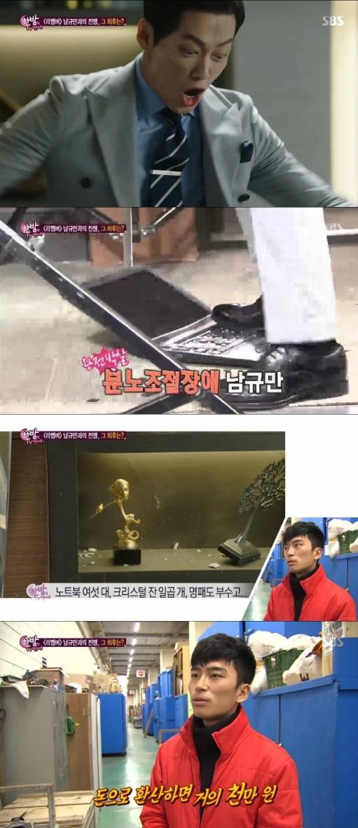 17일 방송된 SBS '한밤의 TV 연예'에서 리멤버 소품 담당자는 남궁민이 연기한 악역 남규만에 대해 "일단은 자동차 한 대를 부쉈고 차를 밟고 올라가 골프채로 부수는 바람에 골프채가 휘어지기도 했다"고 밝혀 놀라움을 자아냈다.