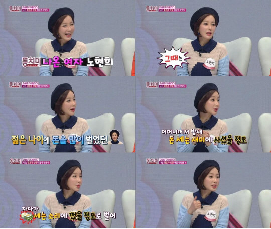 또 노현희는 "돈 들어오는 타이밍과 절묘하게 결혼의 타이밍이 찾아왔다. 별다른 결혼 생각 없이 연애만 하고 있었는데, 열애설이 터졌다. 그때 방송과 관련해서 여러가지 제안이 들어왔지만 이미지가 중요했던 남편의 직업 때문에 수많은 제안들을 거절했다. 거절이 늘어나니 어느새 주변에서 '까칠한 배우'로 불리고 있었다. 그 당시에는 상대에 대한 배려라고 생각했지만 이렇게 이혼할 줄 알았으면 다 할 걸 그랬다"고 말해 주위를 폭소케 했다.