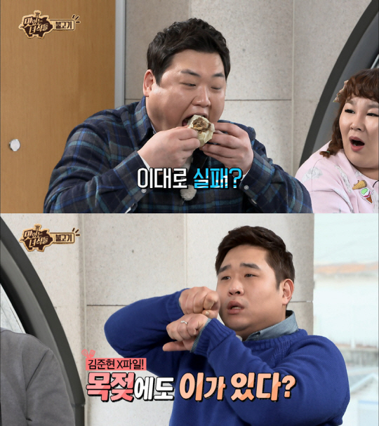 또 대형 쌈을 한 입에 넣는 김준현의 모습을 본 문세윤은 "김준현은 목젖에도 이가 있다 앞 뒤에서 골고루 씹어준다"고 말해 또 한번 웃음을 자아 냈다고.