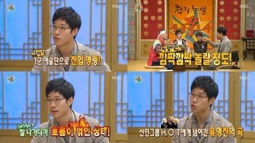 유준상은 "유영진과 군대 동기"라며 인연을 털어놓은 뒤 "예전부터 노래와 춤 실력이 정말 뛰어났다. 특히 춤을 출 때는 정말 팽이 같다"라고 말했다.