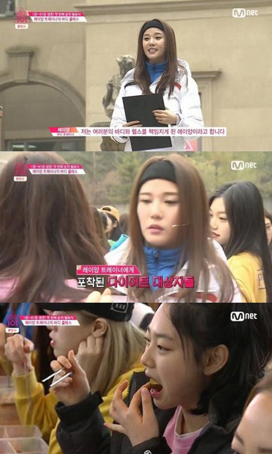 국민연습생들은 "마른 편이 아니라 통통한 편이다", "숨고 싶었다"라며 레이양을 대하는 어려움을 고백했다.