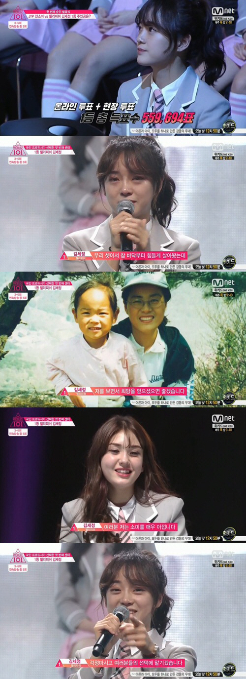 '프로듀스 101' 1위에 오른 김세정이 눈물을 쏟았다.