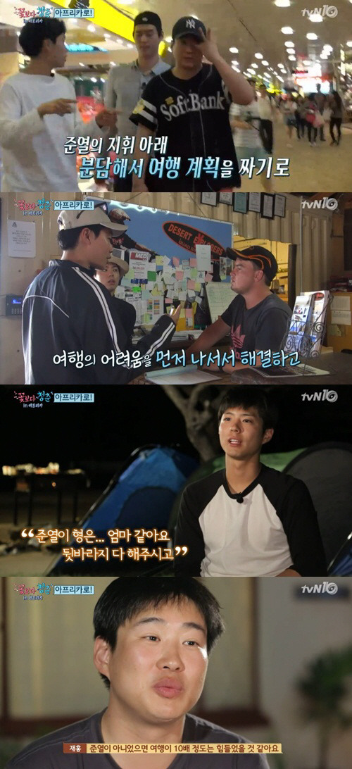 19일 오후 방송된 tvN '꽃보다 청춘 아프리카'에서는 후발대 박보검을 제외한 류준열 안재홍 고경표가 먼저 나미비아에 도착해 고군분투하는 모습이 그려졌다.