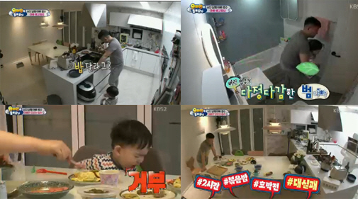 이어 아이들의 볶음밥을 만들기 위해 2시간을 주방에서 사투를 벌였다. 호박전부터 시작해 다양한 식재료를 다듬고 일일이 볶으며 정성껏 볶음밥을 만들었지만, 다을이는 한입 먹은 뒤 물을 연거푸 마시며 음식을 거부했다.