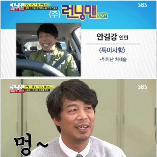 [스포츠조선 이유나 기자] 21일 방송된 SBS '런닝맨'에서 인턴사원으로 등장한 안길강은 개리와 파트너로 촬영에 임했다.