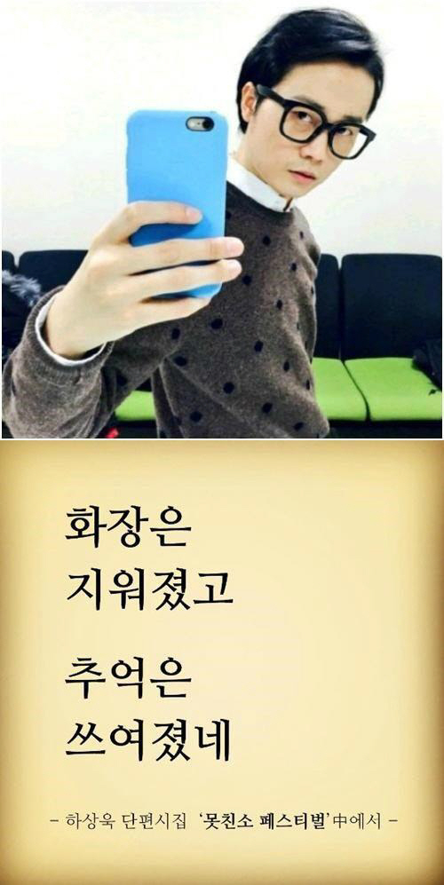 공개된 사진 속에는 하상욱이 MBC '무한도전'에서 공개했던 '화장은 지워졌고 추억은 쓰여졌네'라는 시가 적혀있다.