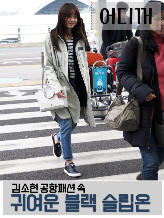 [어디꺼] 김소현 공항패션 속 발랄 블랙 슬립온?
