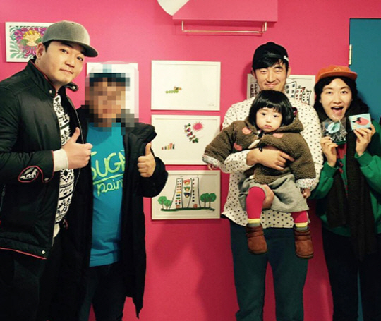 문지윤은 엄지척 포즈를 취하고 있으며, 김미려와 모아양을 안고 있는 정성윤은 카메라를 향해 환한 미소를 짓고있다.