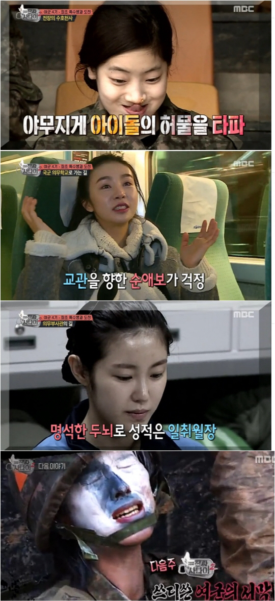 걸그룹 멤버들도 기대를 자극하고 있다. 시크릿 전효성은 낮에는 훈련에 매진하고 밤에는 공부에 전력투구, 교육관련 시험 1등을 놓치지 않는 모습으로 '여군4기 브레인' 탄생을 알렸다. 차오루는 헨리, 엠버 등 엉뚱한 외국인 병사의 계보를 이을 전망. 애프터 스쿨 나나 또한 세계 1위로 뽑힌 미모 속 반전 매력을 예고했으며, 트와이스 다현은 혀가 코 끝에 닿는 개인기를 선보이는 등 귀여움으로 시선을 사로잡았다.