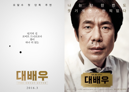 3월 개봉 예정인 '대배우'는 20년째 대학로에서 연극만 하던 '장성필'이 새로운 꿈을 좇아 영화계에 도전하며 겪는 이야기를 담은 휴먼 코미디 영화다.