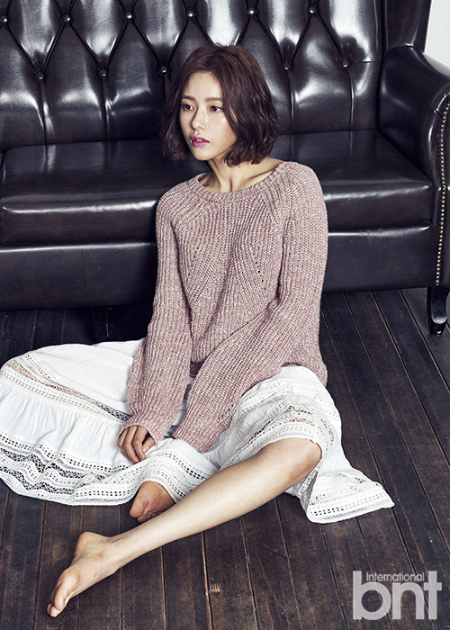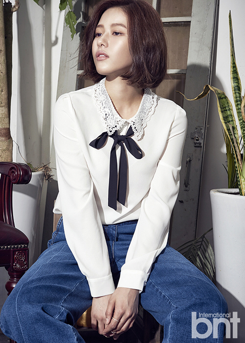 이어진 촬영에서는 핑크 컬러의 루즈 핏 스웨터에 화이트 레이스 스커트로 청순한 느낌을 냈다. 마지막은 그레이와 네이비 배색 재킷과 와이드 팬츠로 보이시한 매력을 연출했다. 화보 촬영 내내 표정과 포즈를 제안하며 콘셉트의 분위기를 잘 살려냈다.