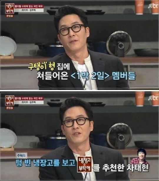 이에 김주혁은 "1박 2일 하차하는 날 멤버들이 집에 왔었다"며 "우리집 냉장고를 열어보더니 아무 것도 없는 것을 보고 안되겠다며 이 프로그램에 나갈 것을 추천했다"고 밝혔다.
