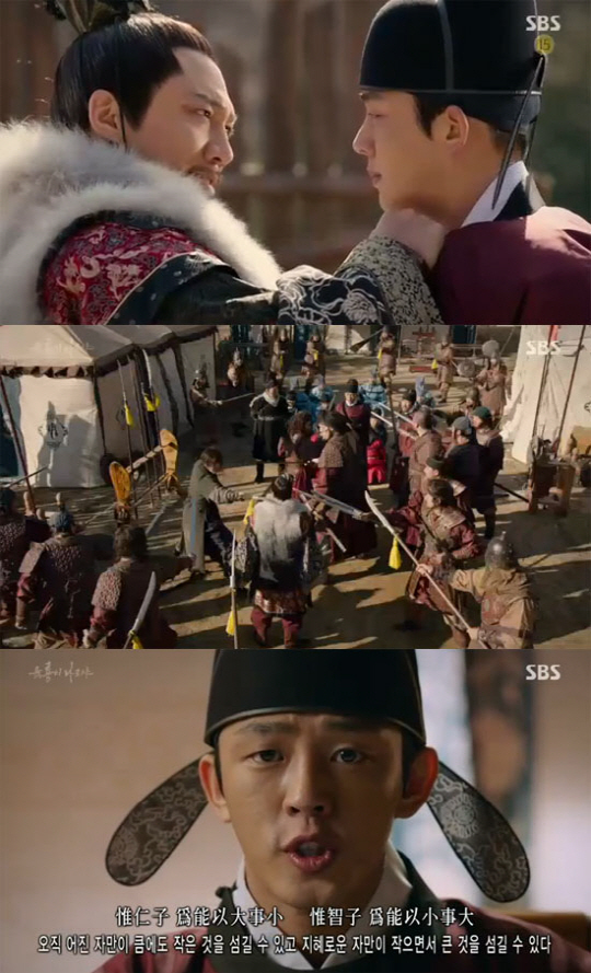 23일 방송된 SBS 월화드라마 '육룡이 나르샤'에서는 이방원(유아인)이 주체(문종원)에게 무휼(윤균상)의 목숨을 구걸했다.
