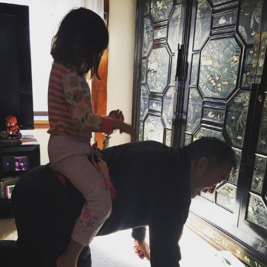 추성훈은 24일 자신의 인스타그램에 '할아버지 말(Grandfather horse)'이라는 짧은 메시지와 함께 사진을 게재했다. 사랑이는 할아버지와 말타기를 하며 즐겁게 놀고 있는 모습이다. 방송을 통해 보았던 남다른 가족애가 엿보이는 사진이다.