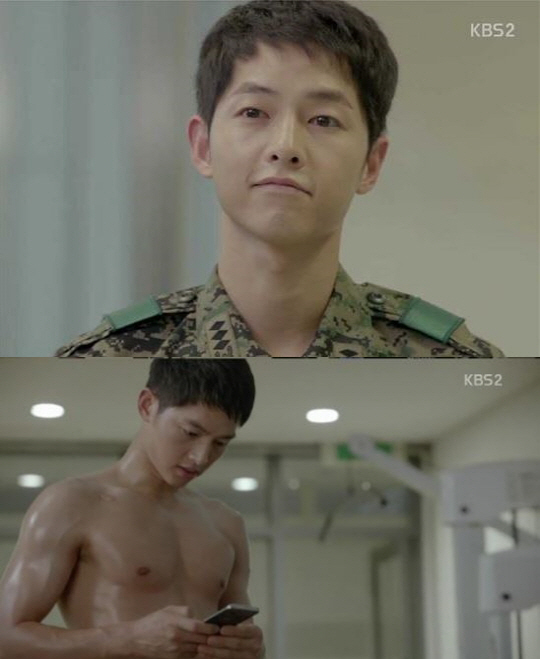 송중기는 특전사 대위 유시진 캐릭터를 기가 막히게 풀어냈다. 유시진은 육군 원사로 명예 전역한 아버지의 만류에도 자신의 가치관을 관철하고자 육사 행을 택한 만능남이다. 덕분에 자신의 신념과 상식, 군인의 명예로 똘똘 뭉쳐있다. 어떻게보면 고지식하고 답답해 보일 수 있는 설정. 그러나 송중기는 달라도 달랐다. 명령에 죽고 사는 군인의 운명을 적진 한가운데에서도 주먹을 쥐는 패기 가득한 용장의 모습으로 그려냈다. 상의를 탈의한채 조각 근육을 뽐내며 쏟아내는 화려한 액션신에 여심은 녹았다. 고지식한 군대 마인드는 한 여자를 향한 고지식한 사랑법으로 돌려 풀어냈다. 첫 눈에 호감을 느낀 강모연에게 돌직구로 대시하는 모습은 '상남자' 그 자체였다. 다소 무뚝뚝하고 잔재미도 없지만 돌리는 법 없이 직진을 외치는 핵직구 대시법, 다소 오그라드는 대사조차 송중기였기에 섹시하게 다가왔다.