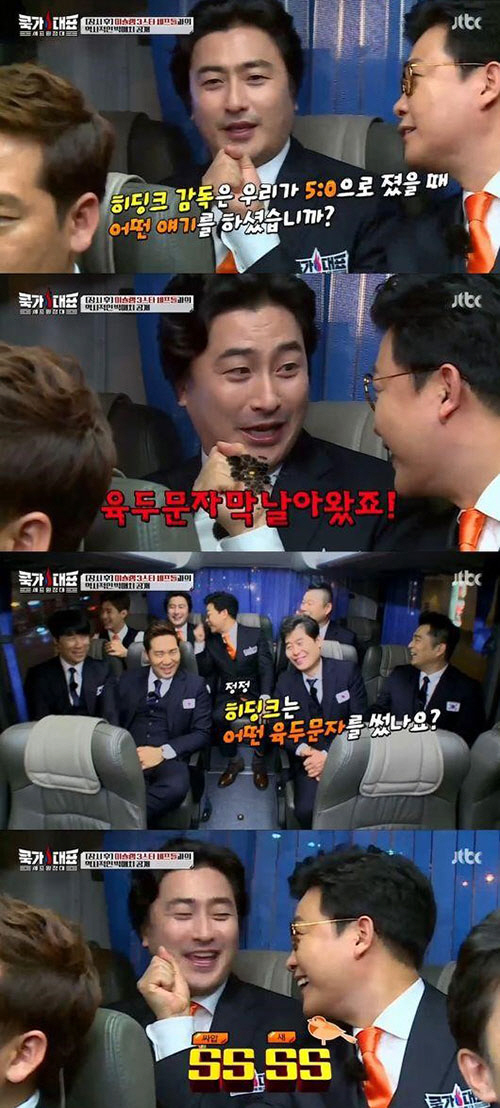 그러자 김성주는 "히딩크는 어떤 육두문자를 썼냐"고 다시 물었고, 안정환은 "SS새"라고 답해 웃음을 자아냈다.