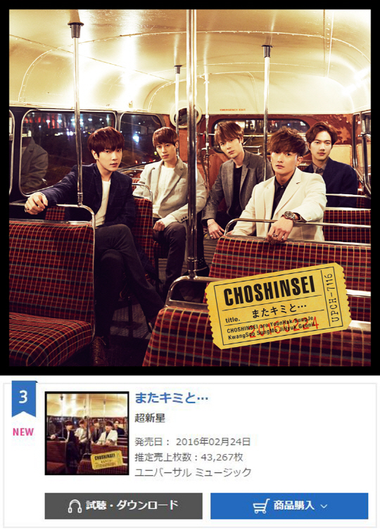 초신성의 싱글 앨범이 오리콘차트 3위에 올랐다.