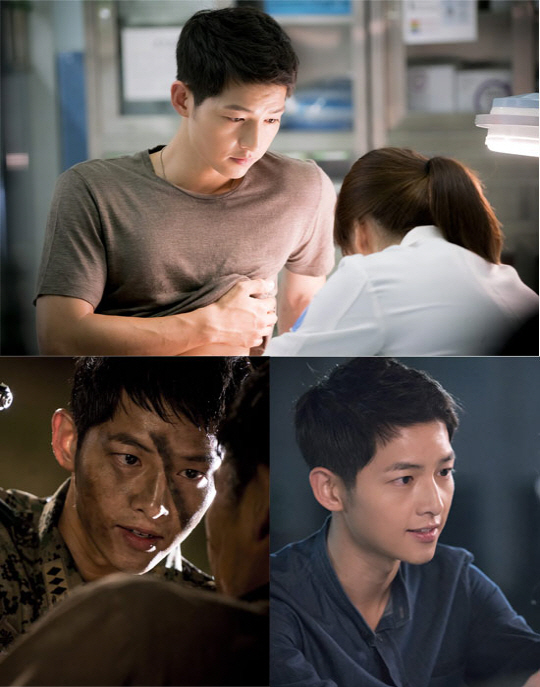 지난 24일 첫 방송된 KBS 2TV 수목드라마 '태양의 후예'(극본 김은숙, 김원석, 연출 이응복, 백상훈 제작 태양의후예 문화산업전문회사, NEW)에서 유시진 대위로 분한 송중기. 강렬함과 달콤함을 모두 장착한 눈빛, 그리고 상황에 재치 있게 대응하는 농담과 '다나까' 말투는 진지함과 유쾌함을 오가는 캐릭터를 완벽하게 완성했다.