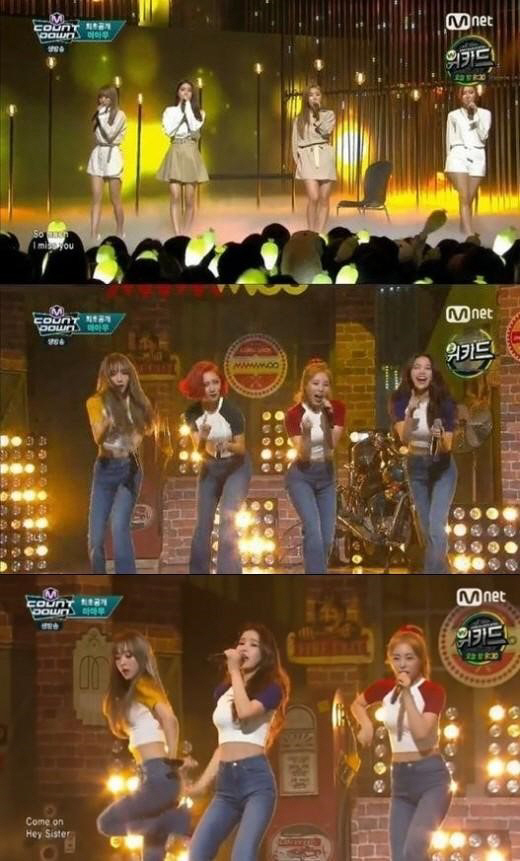 25일 방송된 '엠카운트다운'에서는 마마무가 출연해 '아이 미스 유(I Miss You)'와 '넌 is 뭔들'을 열창했다.
