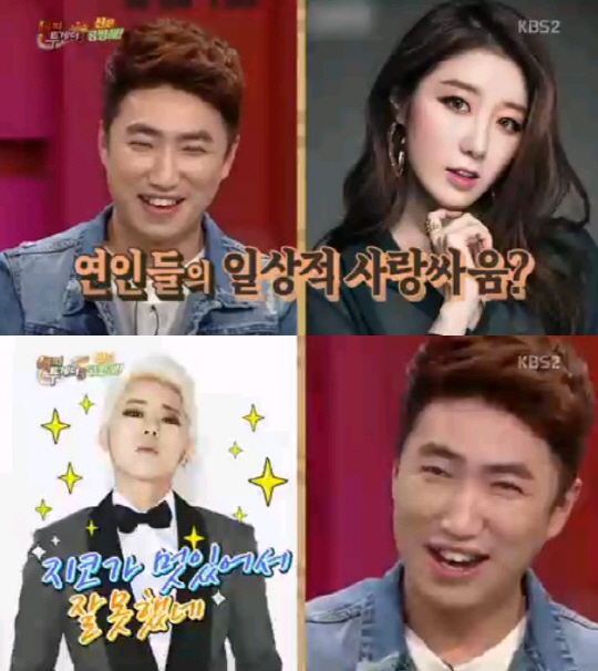 이어 나비는 싸운 이유를 묻는 질문에 "정말 별일 아니다. 서로가 너무 좋아하다 보니까 그런거다"라고 말한 뒤 "제가 지코가 멋있다고 그래서 싸운거다. 장동민이 '그럼 지코를 만나'라고 말하더라"고 폭로해 웃음을 자아냈다. 결국 나비는 "사과하고 싶다. 녹화 끝나고 소주 사주겠다"며 먼저 화해를 신청했다.