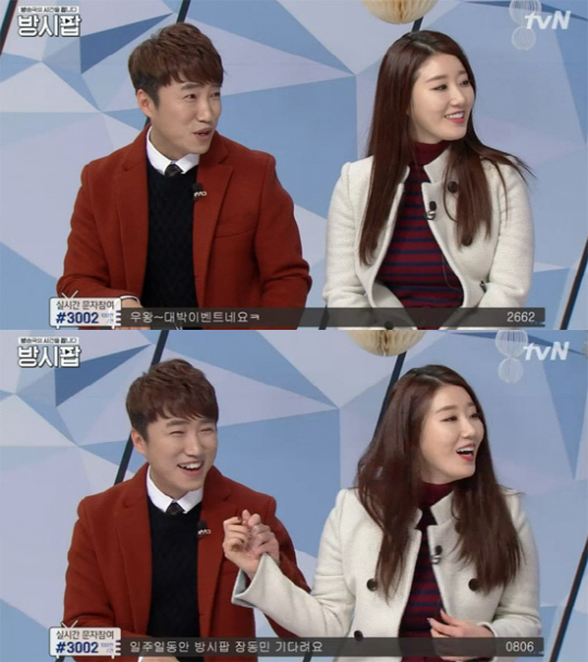 연예계 커플 나비와 장동민이 '해피투게더'에서 전화통화로 달달한 모습을 보인 가운데, 과거 생방송 도중 열애 사실을 인정한 모습이 새삼 화제다.