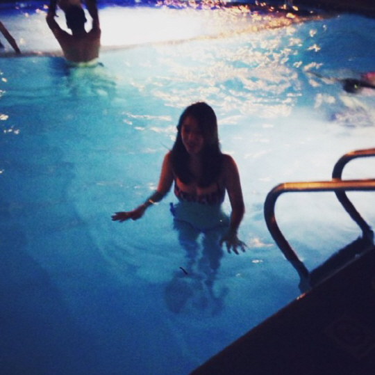 사진 속 설리는 수영장에서 비키니 몸매를 뽐내고 있는 모습. 비키니를 입고 볼륨감 넘치는 몸매를 드러낸 설리는 청순글래머의 자태를 드러내 시선을 사로잡았다.