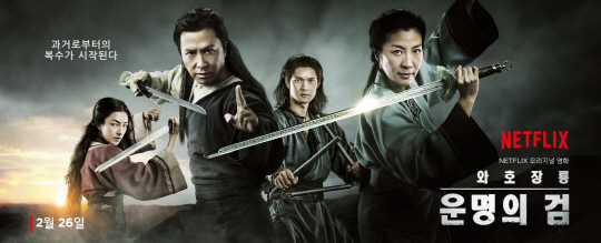 [스포츠조선 김표향 기자] 인터넷 기반 TV 서비스 기업 넷플릭스가 '와호장룡'의 속편인 '와호장룡: 운명의 검'을 26일부터 독점 공개한다.