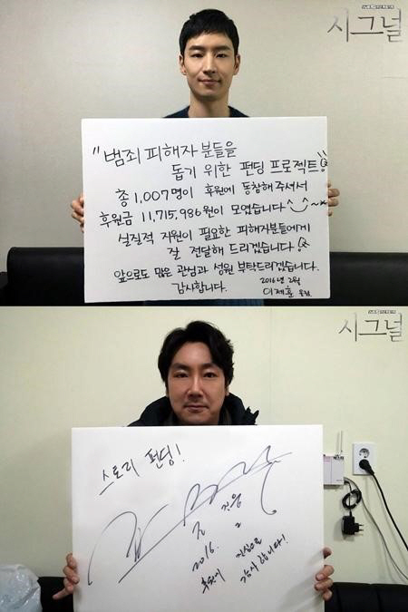 앞서 '시그널' 측은 강력 범죄 피해자분들과 그 가족들에게 전달할 스토리펀딩 프로젝트를 진행한다며 시청자들에게 도움의 손길을 요청한 바 있다.