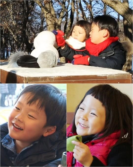 이날 사랑과 유토는 '겨울연가'에서 두 주인공이 첫 뽀뽀를 나눴던 벤치에 나란히 앉아 달달한 분위기를 자아냈다. 사랑과 유토는 눈사람 모형을 서로 쓰다듬으며 최지우 배용준 버금가는 풋풋한 커플을 완벽히 재현한 것.
