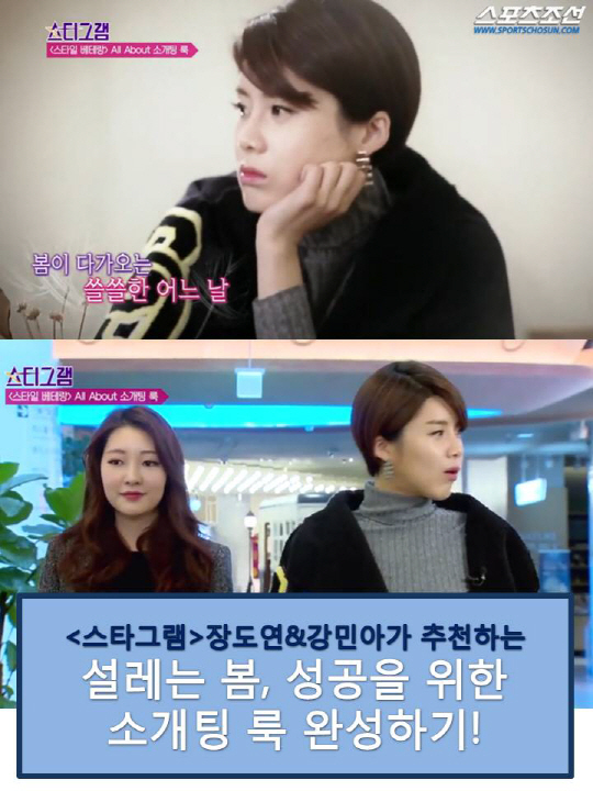 26일 오후 방송된 SBS플러스 '스타그램'에서는 개그우먼 장도연과 2014 슈퍼모델 김민아가 '봄맞이 소개팅룩을 추천하라'는 미션을 수행, 작년에 이은 올해 대세 트렌드 서스펜더 스커트와 영원한 여성들의 워너비 아이템 트렌치코트를 활용한 소개팅 스타일링을 선보여 눈길을 끌었다.