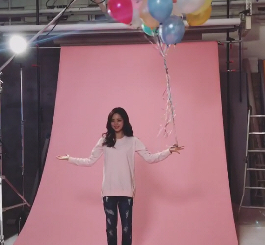 공개된 영상에서 한채아는 한 광고 촬영에서 풍선을 띄워올리며 정면을 바라보고 환하게 웃고 있다.