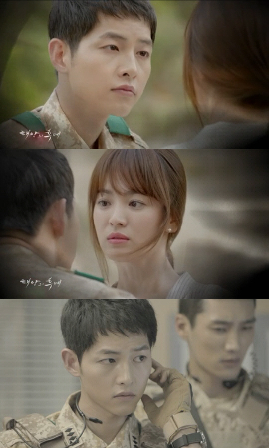 우르크의 태백부대로 파병을 간 유시진은 그곳에서 의료봉사를 온 강모연과 우연찮게 다시 마주친 것. 두 사람은 서로를 알아보고도 모른척 지나쳤지만, 배를 타고 데이트를 즐기는 모습도 뒤이어 공개됐다.