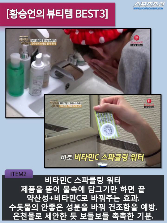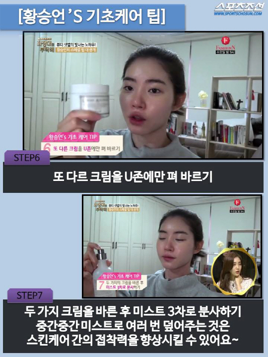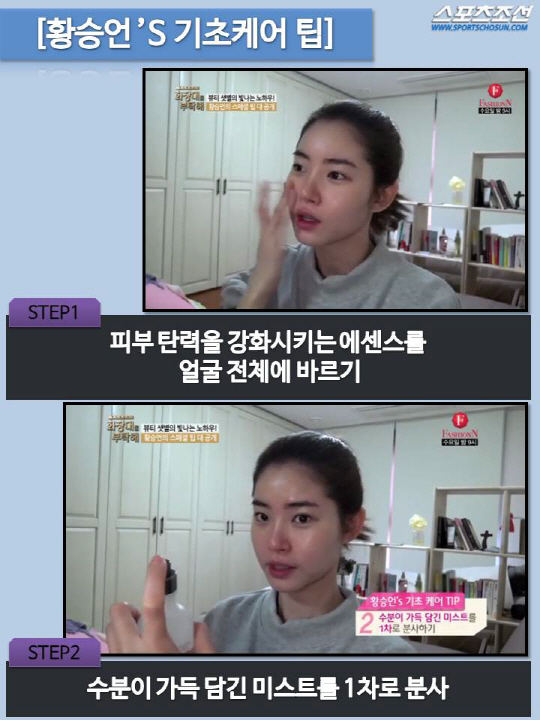 [스포츠조선 전혜진 기자] 2일 오후 방송된 팟캐스트 계열 채널 패션앤에서 방송된 '화장대를 부탁해'에서는 뷰티 샛별, 배우 황승언이 등장해 풋풋한 미모를 유지할 수 있는 뷰티팁을 공개했다. 그녀의 뷰티 비결은 비타민C 스파클링 워터를 활용한 꼼꼼한 세안과 7단계에 걸친 수분 레이어드 기초관리 등 남들이 쉽게 넘어갈 수 있는 기본적인 부분을 놓치지 않고 체계적으로 관리하는 데 있었다.