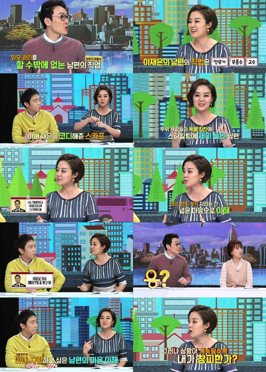[스포츠조선 이유나 기자] 배우 이재은이 "너무 외모에 신경 쓰는 남편 때문에 불안하다"고 고충을 털어놨다.