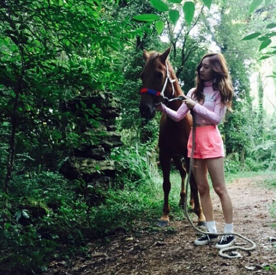 사진 속 크리스탈은 나무가 우거진 푸른 숲에서 몽환적 매력을 발산했다. 핑크색 핫팬츠를 입고 늘씬한 각선미를 뽐낸 크리스탈은 운동화를 신은 상태에서도 우월한 비율을 자랑했다. 또 엠버, 빅토리아와 함께 말을 쓰다듬으며 마치 동화 속 한 장면 같은 모습을 연출해 눈길을 끌었다.