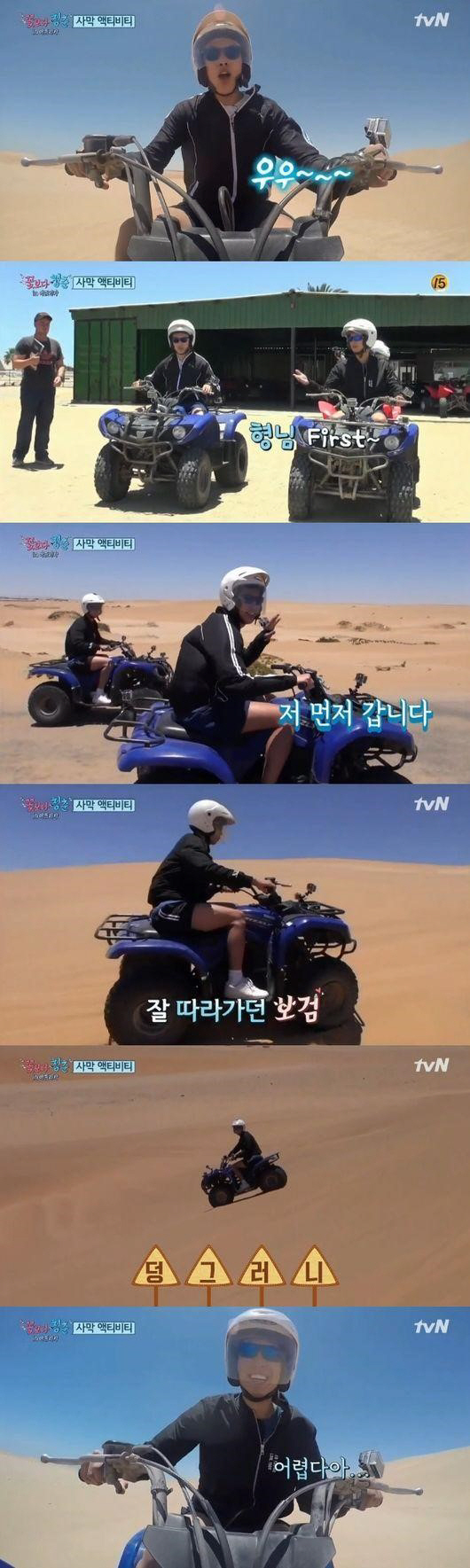 이어 두 사람은 바이크에 몸을 맞기고 넓게 펼쳐진 사막을 즐겼다. 순조롭게 잘 나가는 류준열과는 달리 박보검은 "어렵다"며 뒤쳐졌고, 결국 가이드 형의 도움을 받았다.