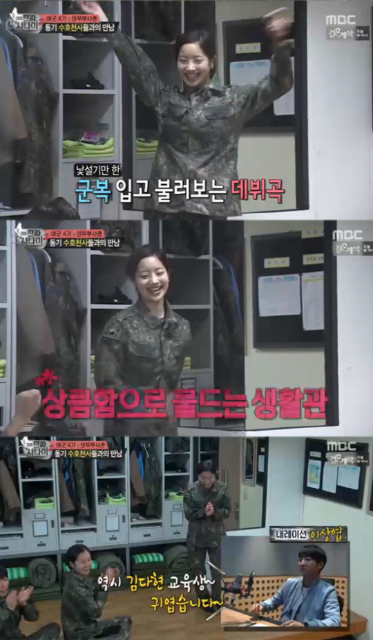 이날 여군 멤버들은 제식 훈련을 마친 뒤 생활관으로 돌아왔고, 동기 수호천사들과의 첫 만남을 가졌다.
