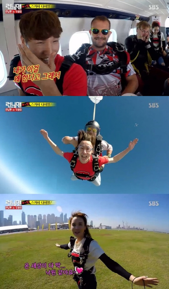 6일 방송된 SBS '일요일이 좋다 런닝맨' 두바이 특집에서는 김종국과 이다해, 정일우가 첫 미션에서 도장 10개가 걸린 스카이 다이빙에 도전하는 모습이 그려졌다.
