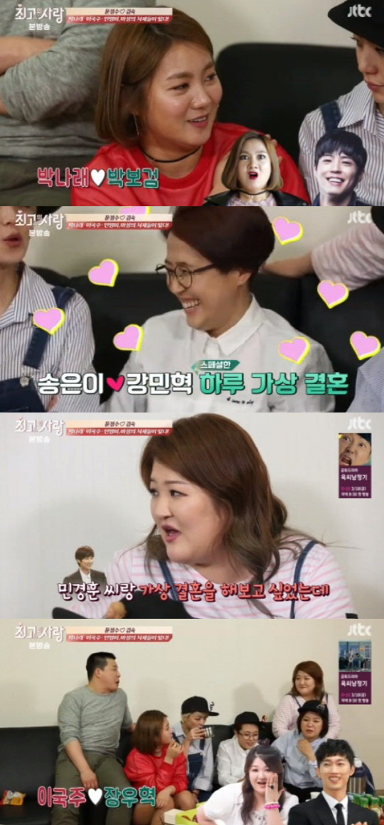 이국주는 "난 민경훈과 가상 결혼하고 싶었는데 얼마 전에 뽀뽀했다"며 "장우혁과 가상 결혼하고 싶다"고 밝혔다.