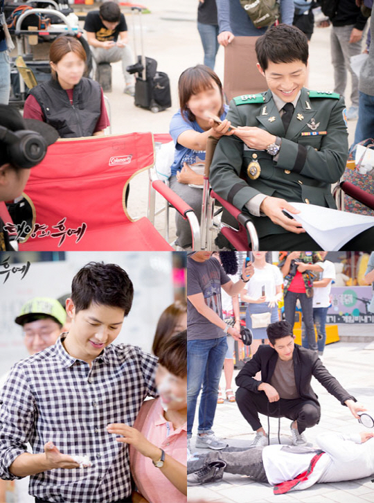 [스포츠조선 이유나 기자] KBS2 수목드라마 '태양의 후예' 당대 최고 여심 스틸러 송중기(유시진 역)의 촬영장 비하인드 컷이 공개되어 화제를 모으고 있다.